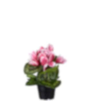 Denna vackra cyklamen med rosa blommor och en höjd på 22 cm är perfekt för att tillföra en färgglad touch till ditt hem. Med sina naturtrogna blad och blommor ger den ett autentiskt utseende.