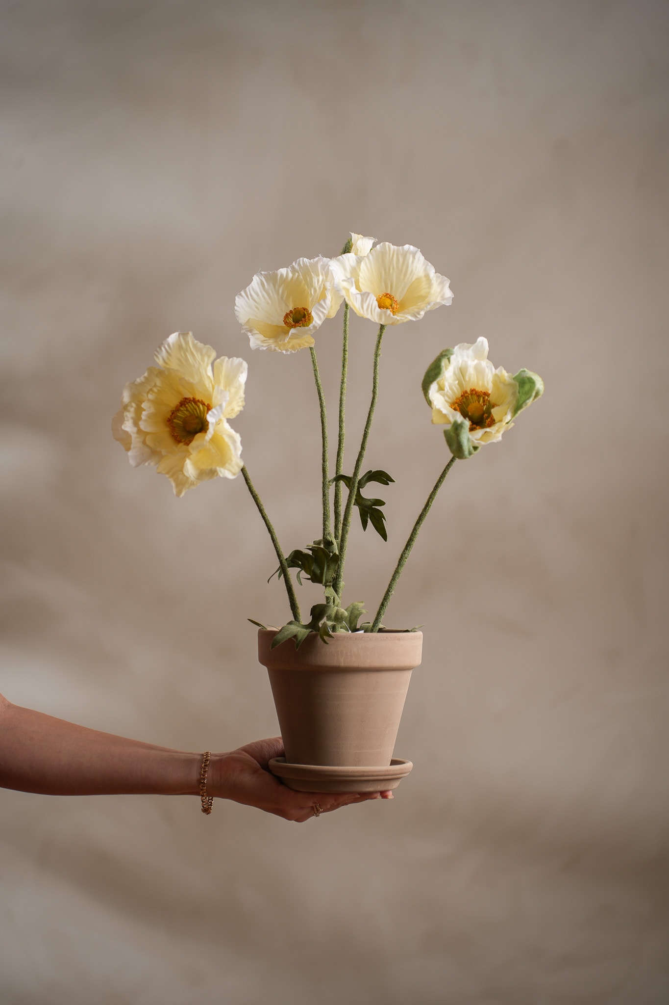 Vallmo i Gul, 50 cm. En stilren Vallmo som står lika fin dag efter dag. Uttrycket är verklighetstroget och helt underhållsfritt, perfekt där du vill ha grön färg och lugn.