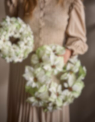 Denna vackra julstjärnekrans i vitt, med en generös storlek på 50 cm, är en perfekt dekoration för att skapa en ljus och fridfull julstämning. De vita blommorna symboliserar vinter och renhet, och kransen passar utmärkt på dörren, väggen eller som en del av en större inredning. Ett stilrent val för dig som vill ha en klassisk men modern juldekoration.