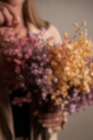 Denna lila brudslöja är ett livfullt inslag i varje rum. Med sin höjd på 70 cm och naturtrogna form passar den perfekt i buketter eller som solitär. Underhållsfri och hållbar.