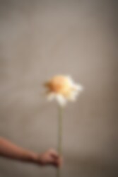 Dahlia i Gul, 62 cm. Dahlian har en tydlig karaktär med generösa kronblad. Den blir ett självklart blickfång på bordet och håller formen utan skötsel – en blomma som alltid känns omsorgsfull.