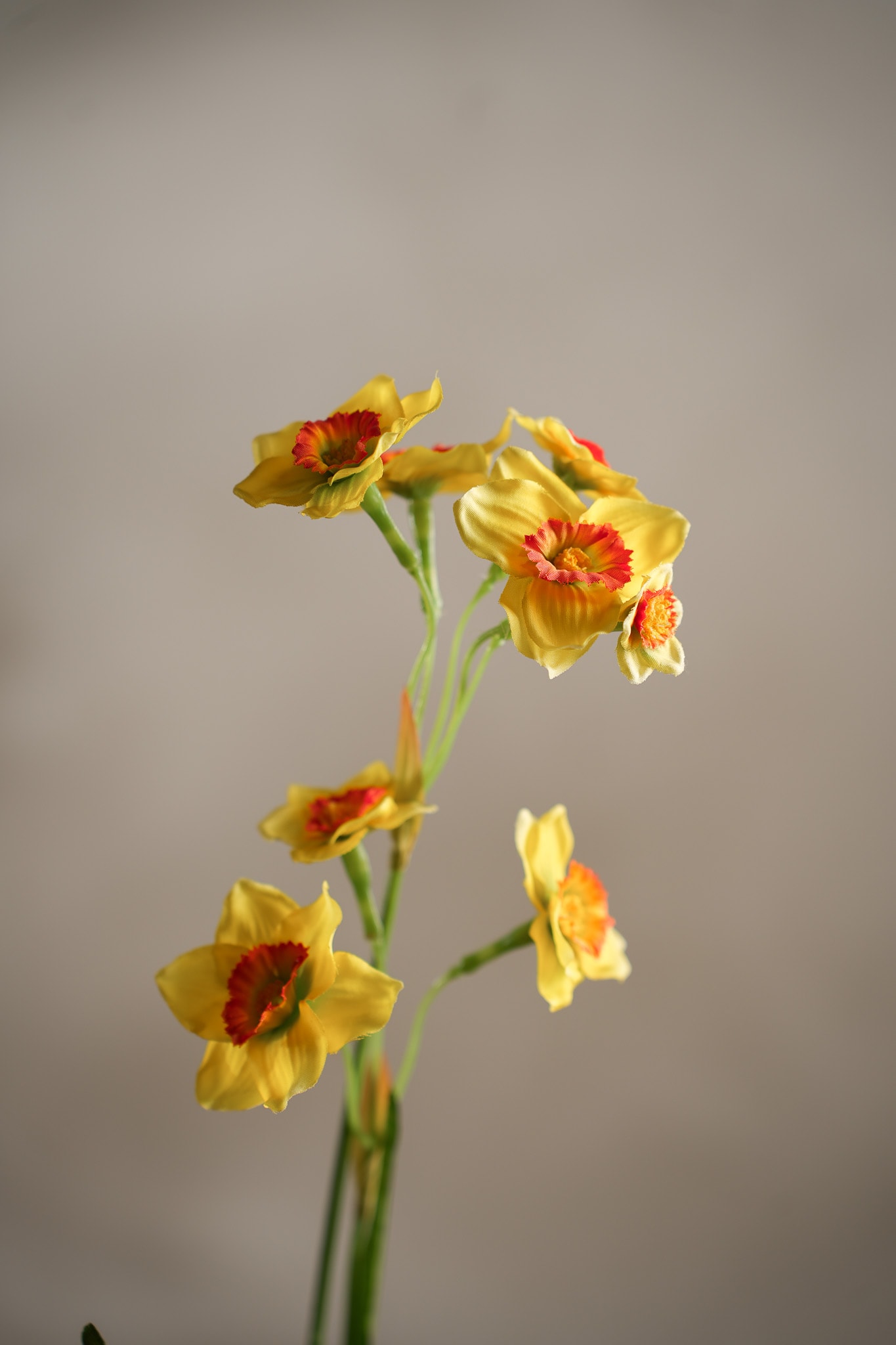 Narciss i Gul, 55 cm. Narcissen ger rummet en frisk, vårig ton. De slanka stjälkarna och de tydliga blommorna känns naturtrogna och piggar upp utan att behöva vattnas. Perfekt i fönster.