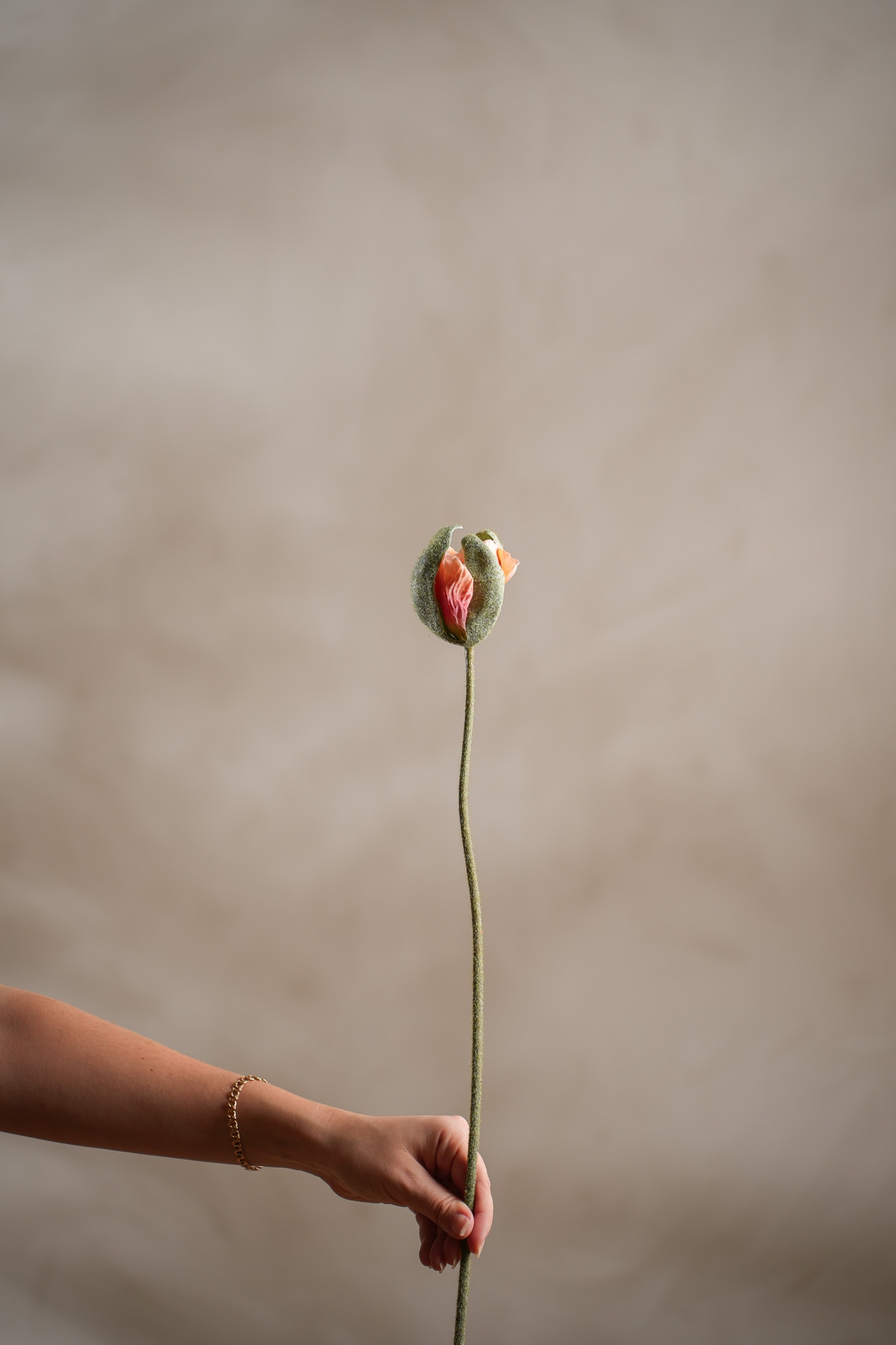 Vallmoknopp i Orange, 78 cm. En stilren Vallmoknopp som står lika fin dag efter dag. Uttrycket är verklighetstroget och helt underhållsfritt, perfekt där du vill ha grön färg och lugn.