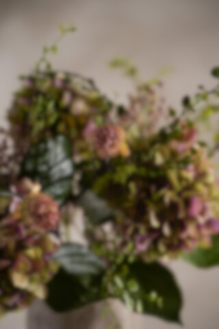 En klassisk hortensiabukett i gröna och lila toner som passar fint året om!