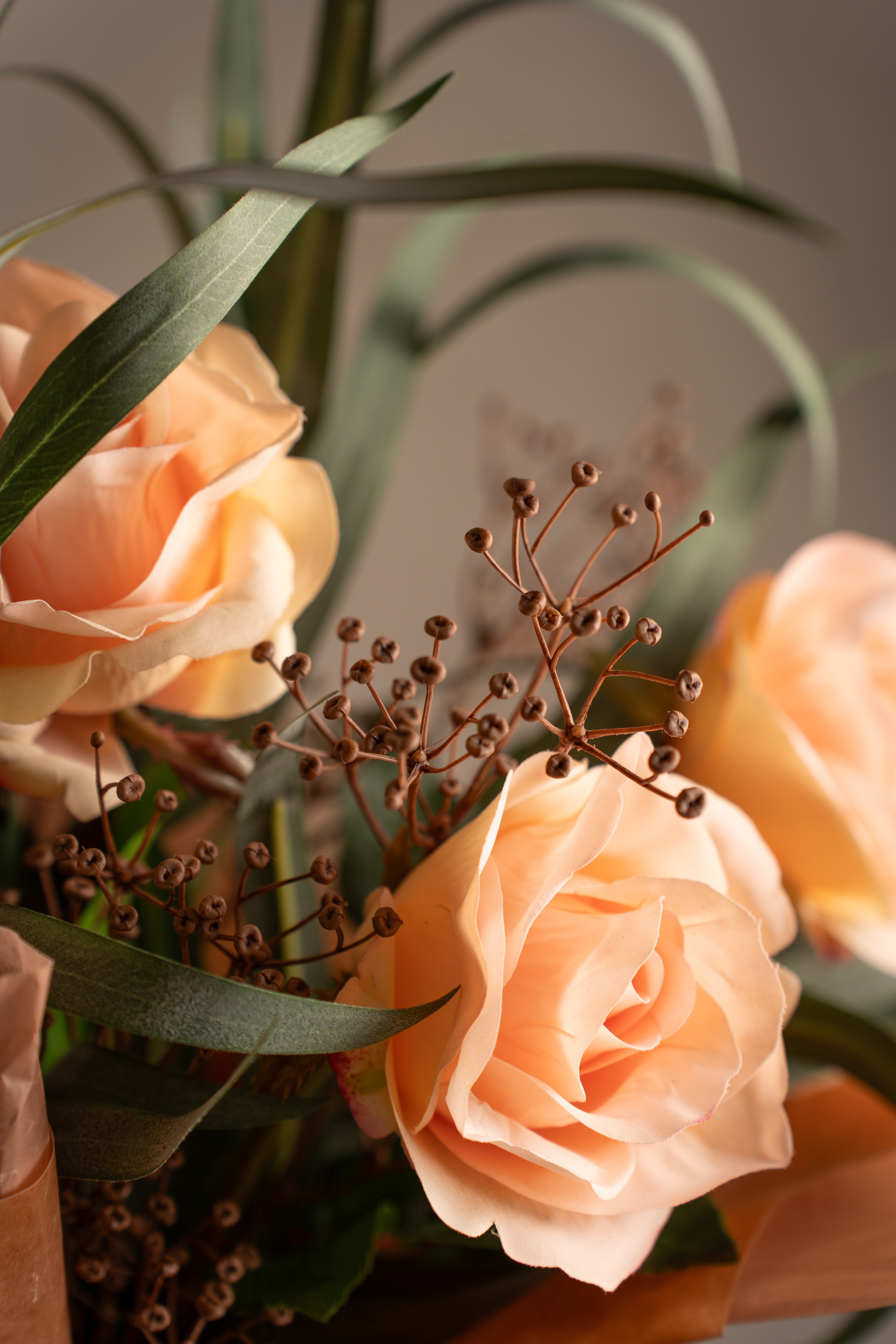 Ljuvliga rosor tillsammans med en spretig eucalyptus och Tallinum är en perfekt kombo och omtyckt av många!